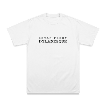 Official Dylanesque white t-shirt from Bryan Ferry, featuring Dylanesque text on the front and 'Bryan Ferry' branding on the reverse.
