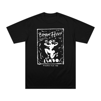 Official Limbo t-shirt from Bryan Ferry, available in black and white, featuring graphic print on the front.