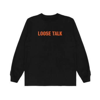 Black longsleeve t-shirt with 'Loose Talk' text in orange on the front.