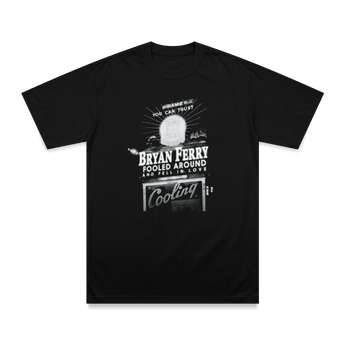 Official Love Letters t-shirt from Bryan Ferry, available in black and white, featuring graphic print on the front and 'Bryan Ferry' branding on the reverse.