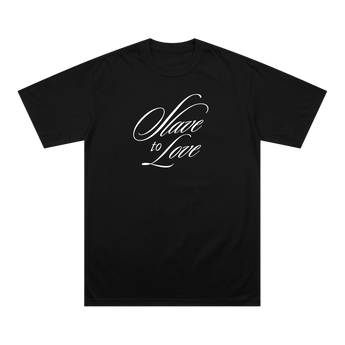 Official Slave To Love t-shirt, available in black and white, featuring graphic logo design on the front.